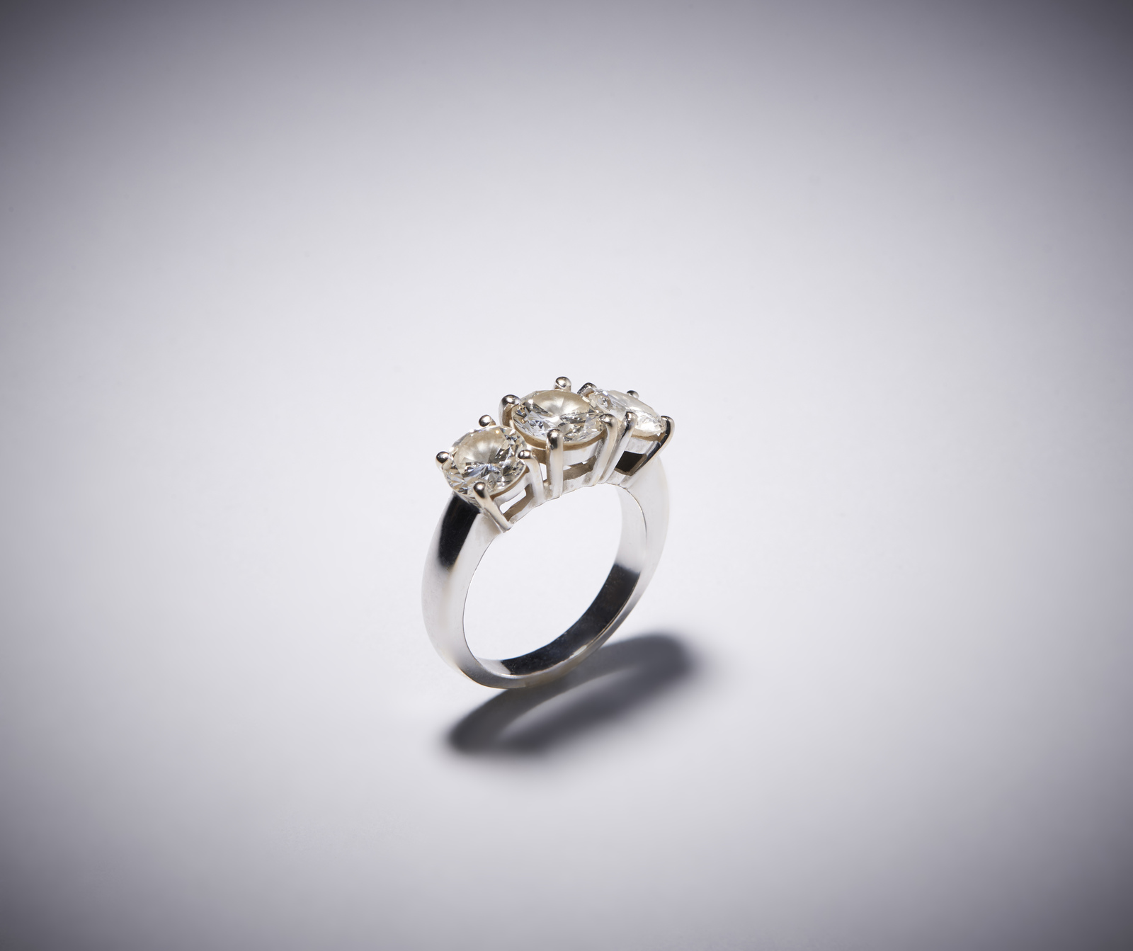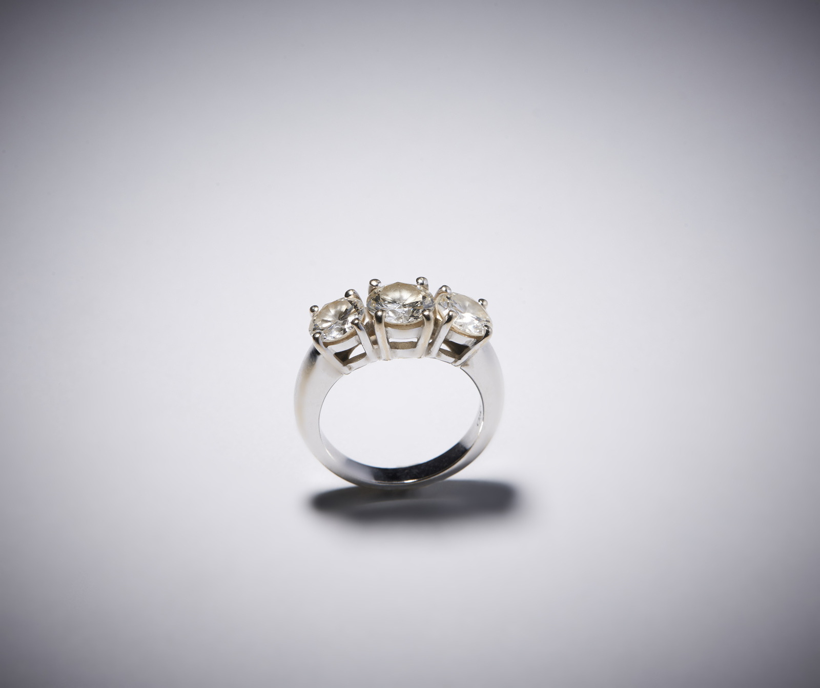 . Un anello in oro bianco 750/1000 trilogy con tre diamanti taglio brillante di circa 3,00 carati . . . . Colore H / I