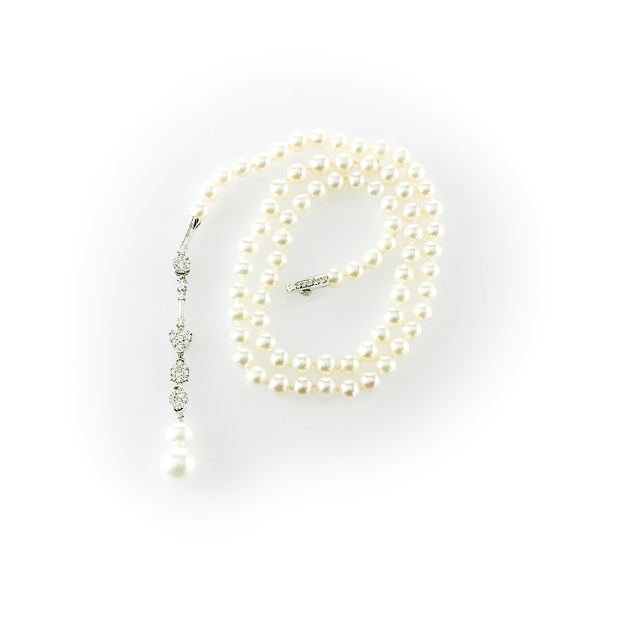 Lotto 30 | Collier in perle Recarlo con pendente in diamanti e perle a gradazione.