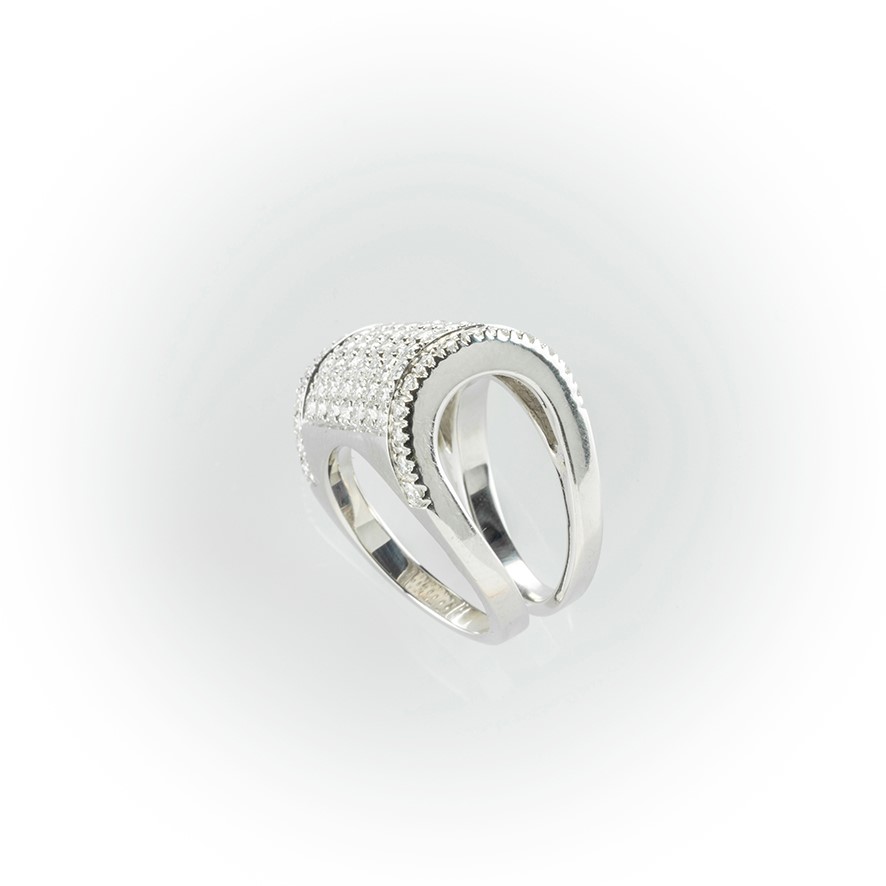 Lotto 32 | Anello bauletto in oro bianco con pavè di diamanti bianchi taglio brillante