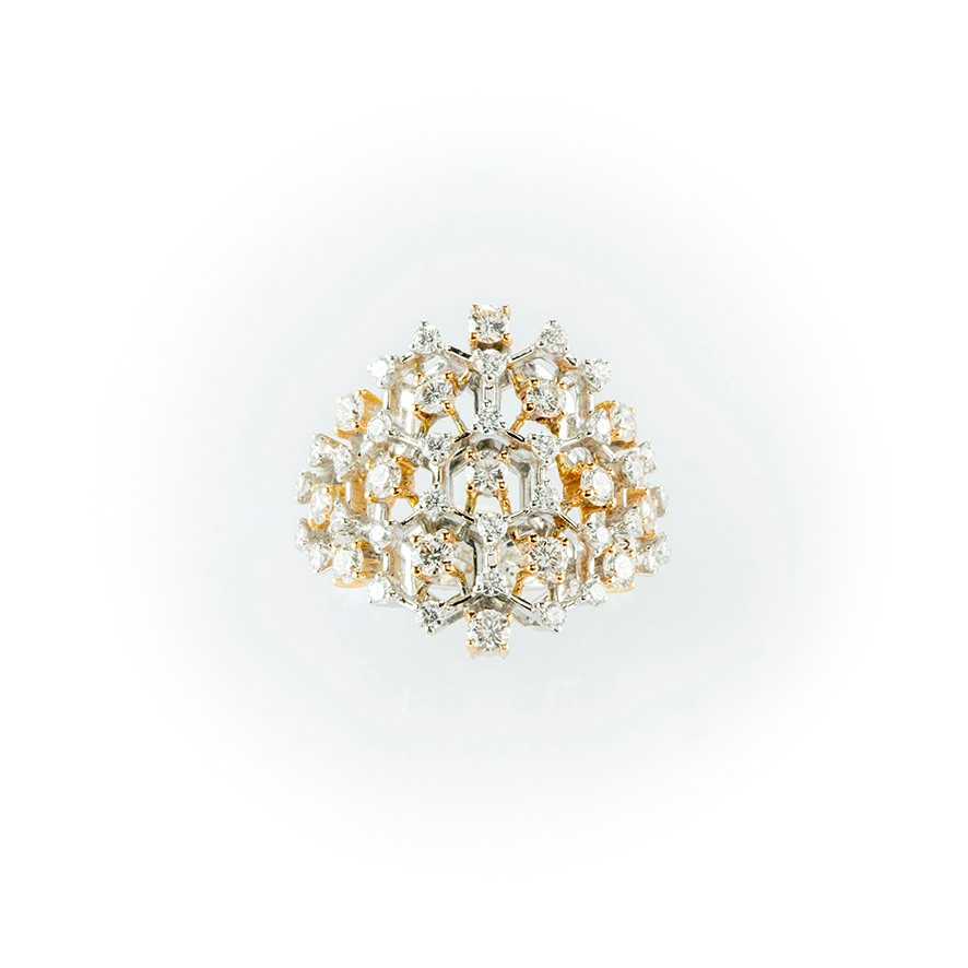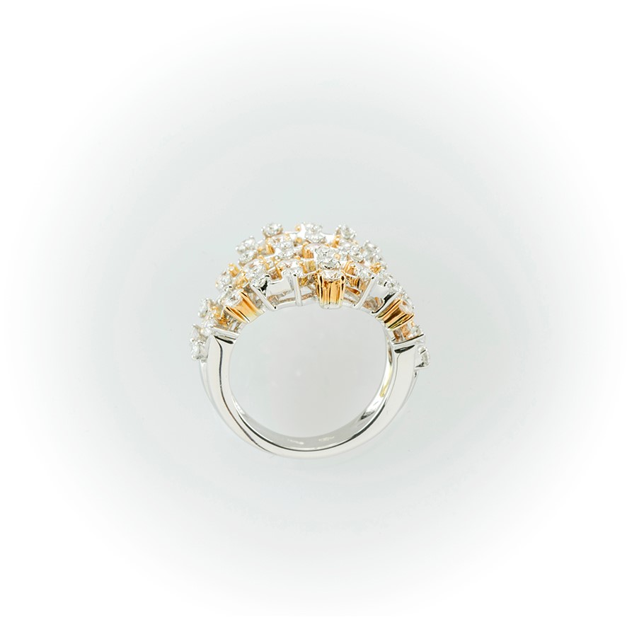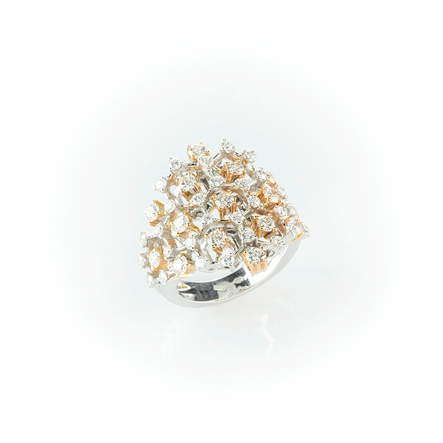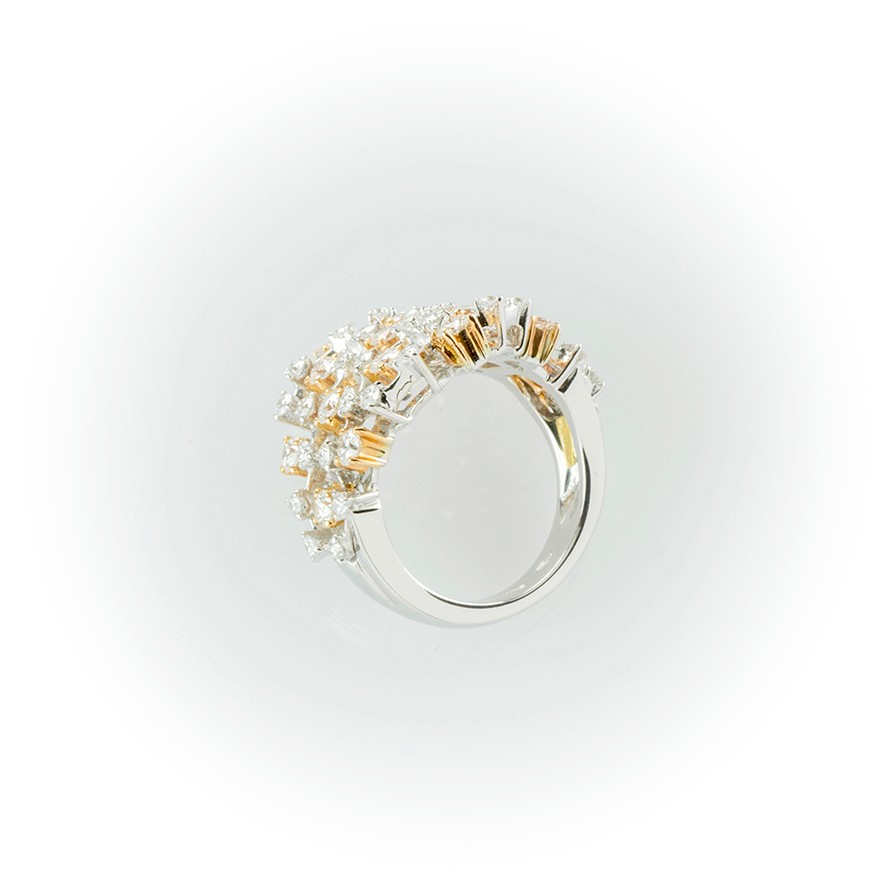 Anello a fascia realizzato in oro bianco e rosa con diamanti bianchi taglio brillante