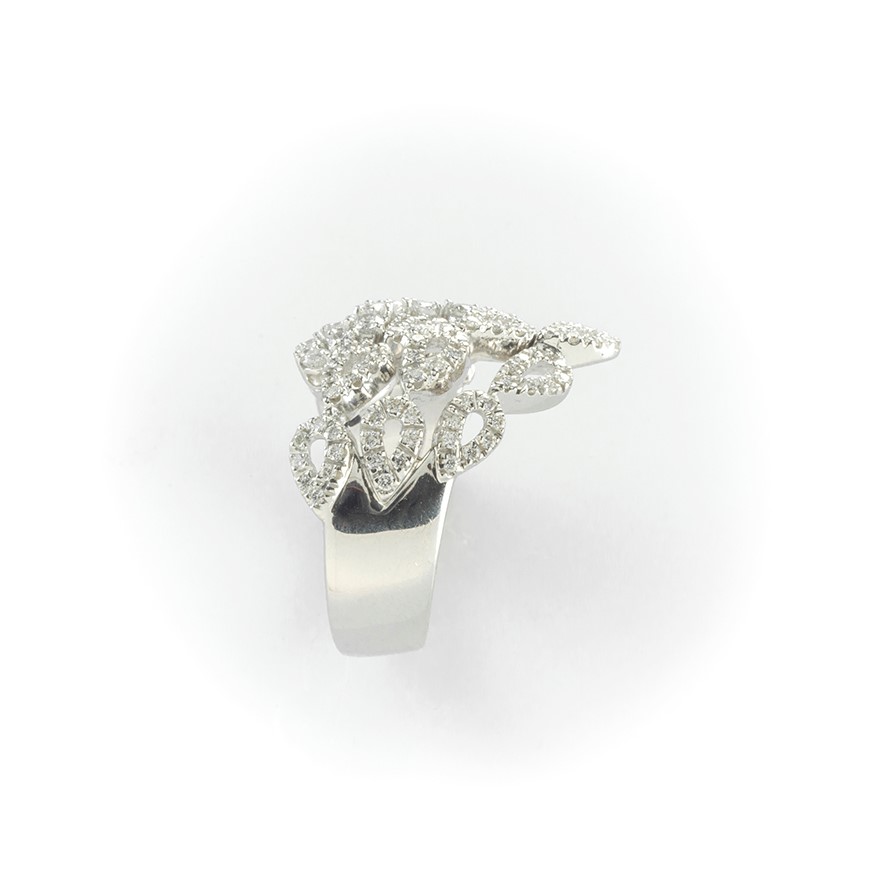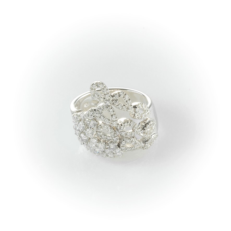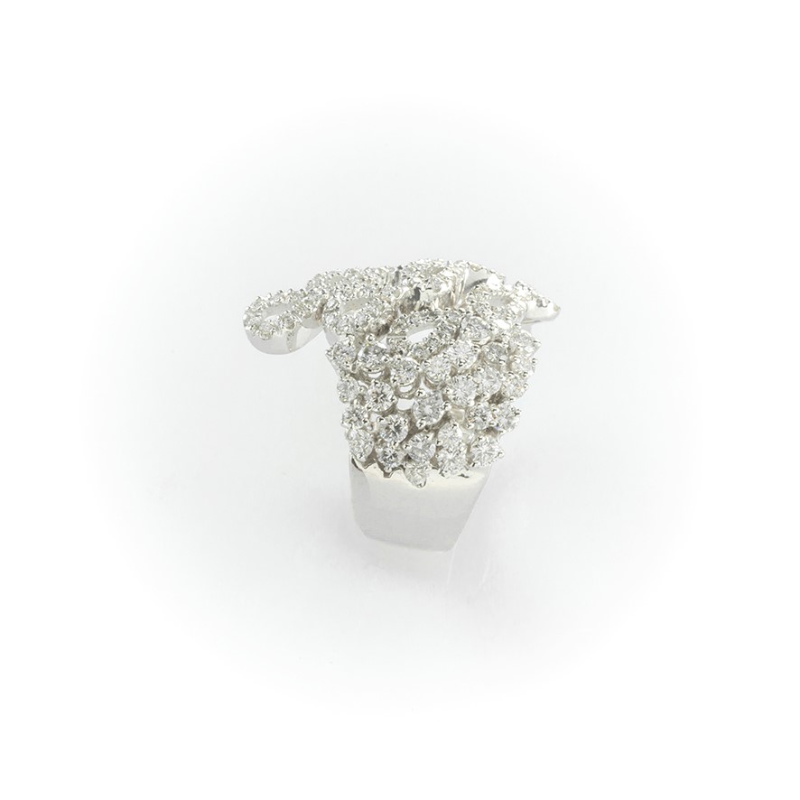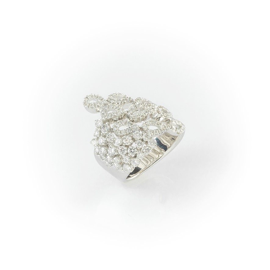 Anello Recarlo in oro bianco realizzato in una fantasia di gocce e pavè di diamanti bianchi taglio brillante