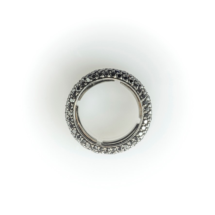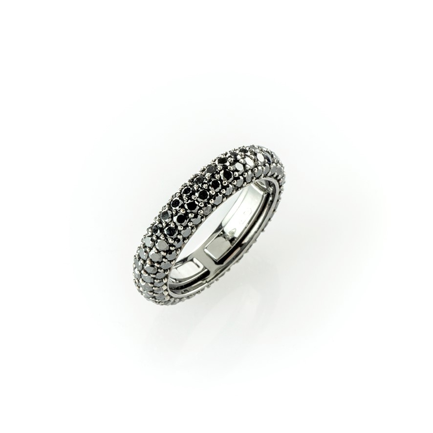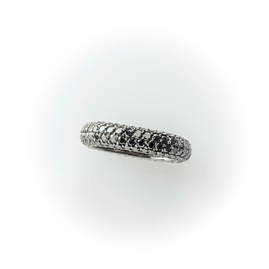 Lotto 75 | Fedina pavè girodito Crieri Eternity Multimisura in oro bianco con rodiatura nera e diamanti neri