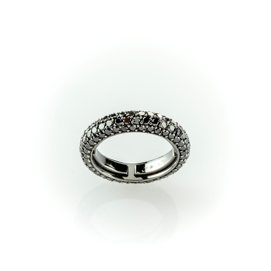 Fedina pavè girodito Crieri Eternity Multimisura in oro bianco con rodiatura nera e diamanti neri