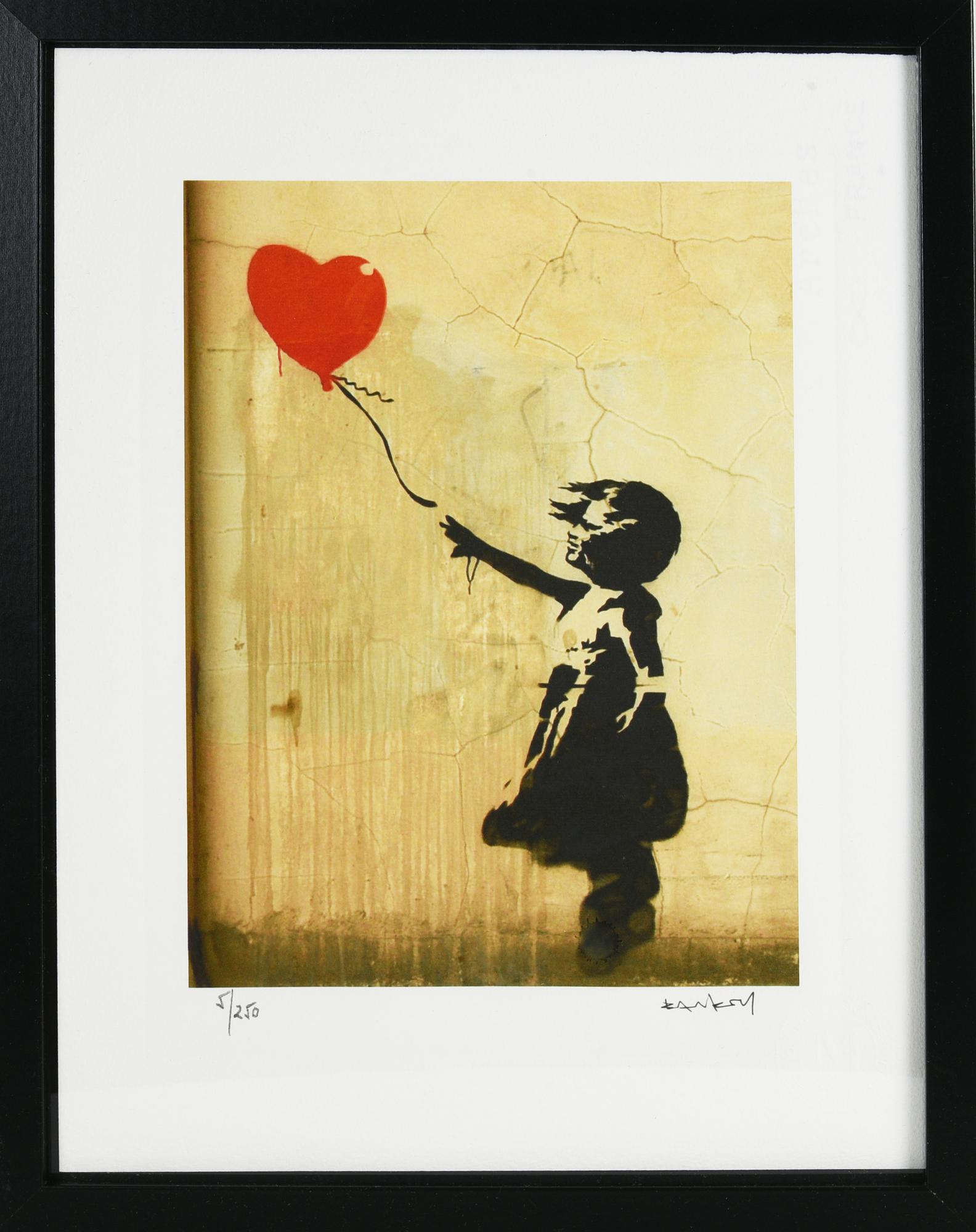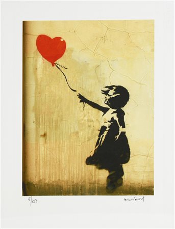 Da Banksy NINA CON GLOBO (VERSION 2) eliografia su carta Arches, cm 38x28,5;...