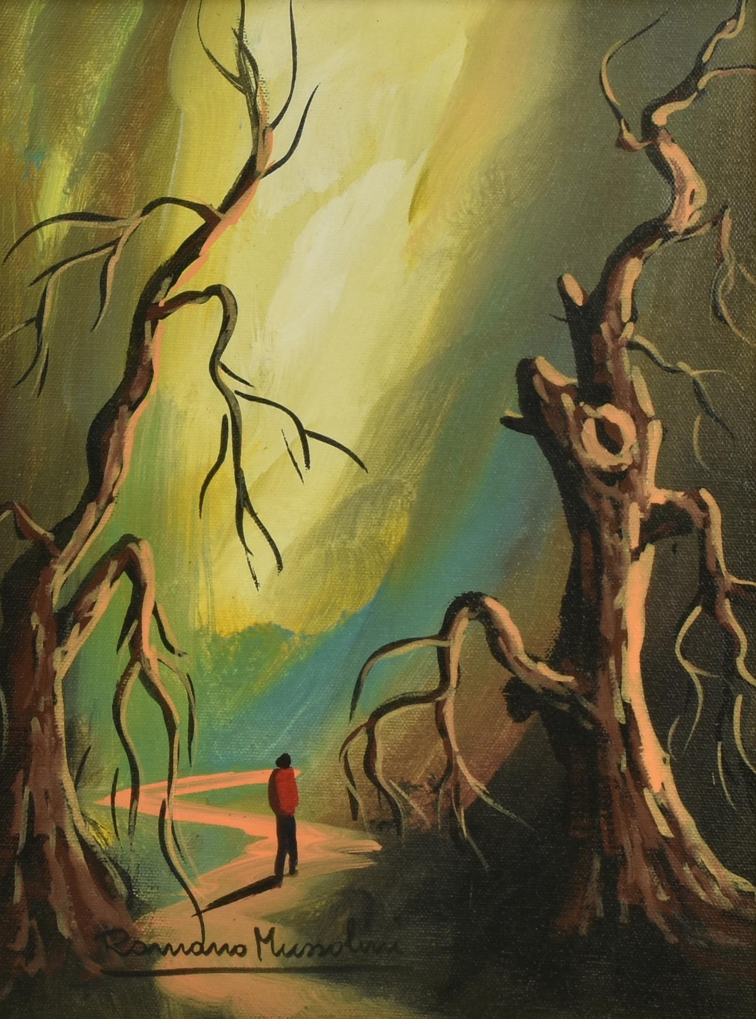 Romano Mussolini SOLITUDINE tecnica mista su tela, cm 40x30 firma sul retro:...