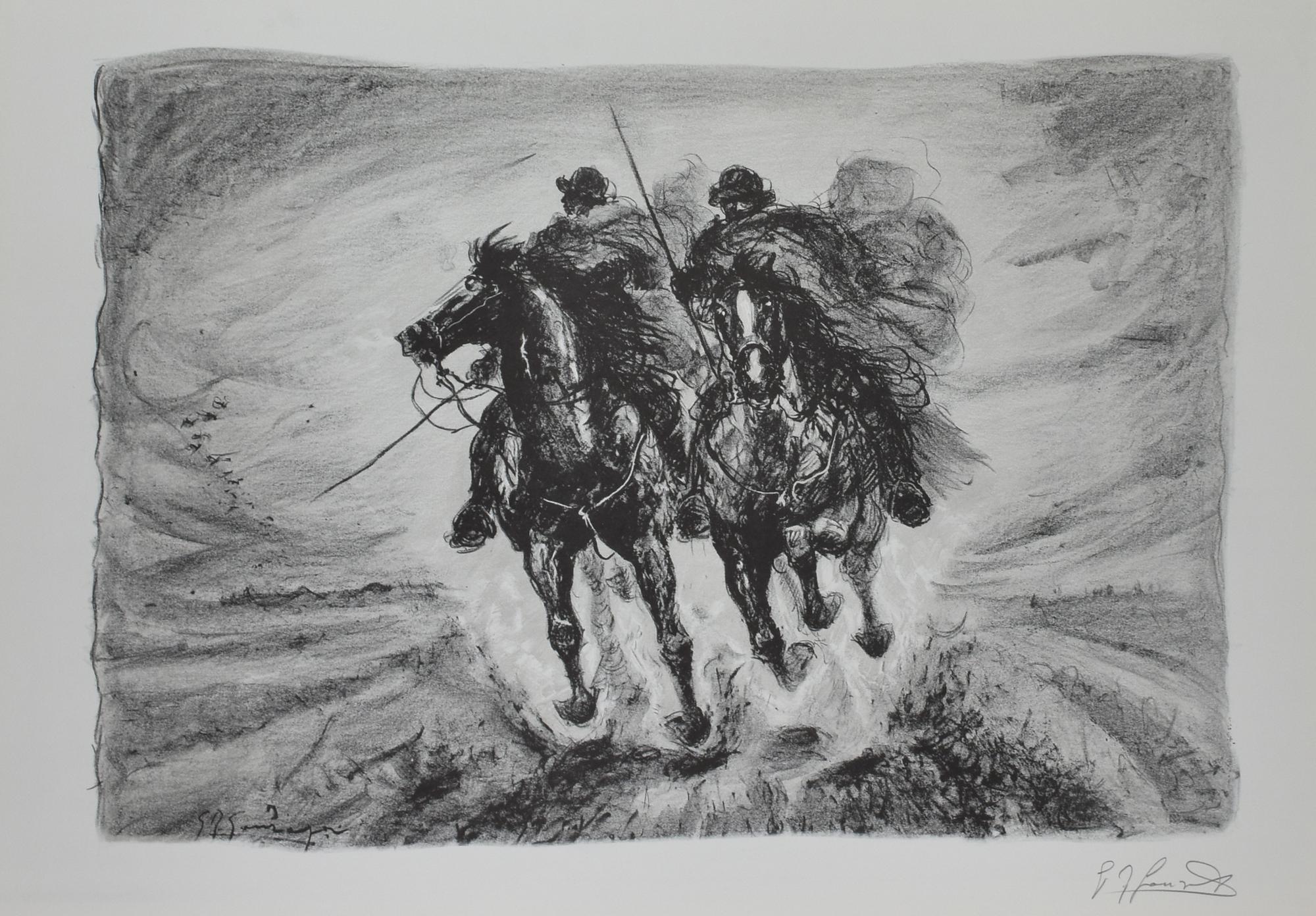 Lotto 174 | Giovan Francesco Gonzaga UOMINI E CAVALLI litografia su carta, cm 59x83; es....