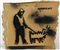 Banksy BARKING DOG (HARING) sprayed stencil graffiti su cartone, cm 26x31 sul...