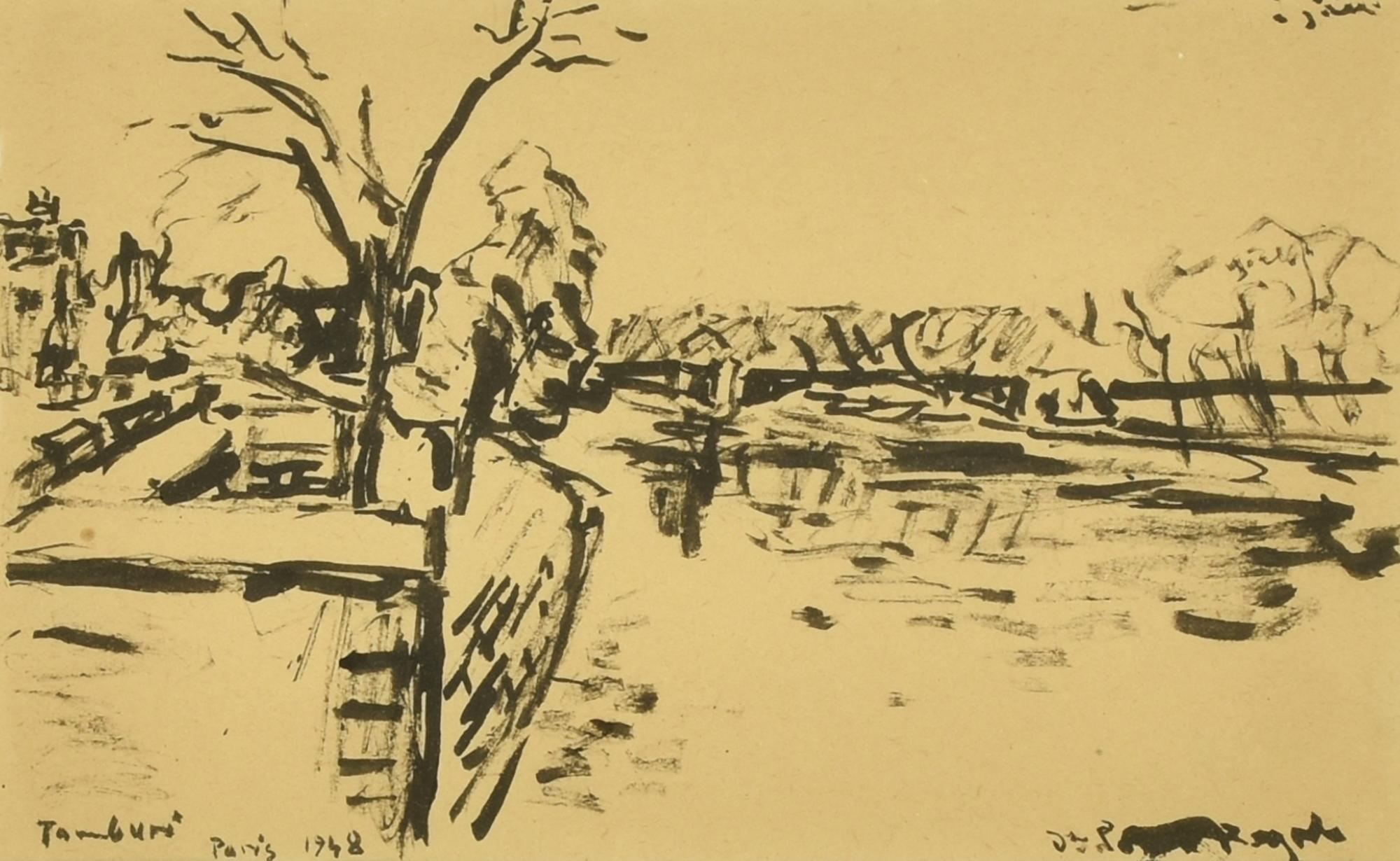 Orfeo Tamburi PARIS china su carta, cm 12,3x19,7 firma, titolo e data...