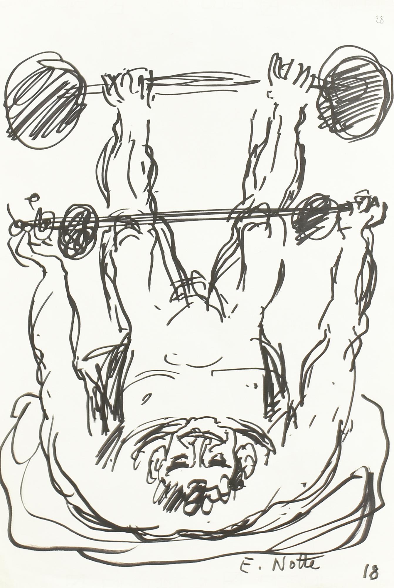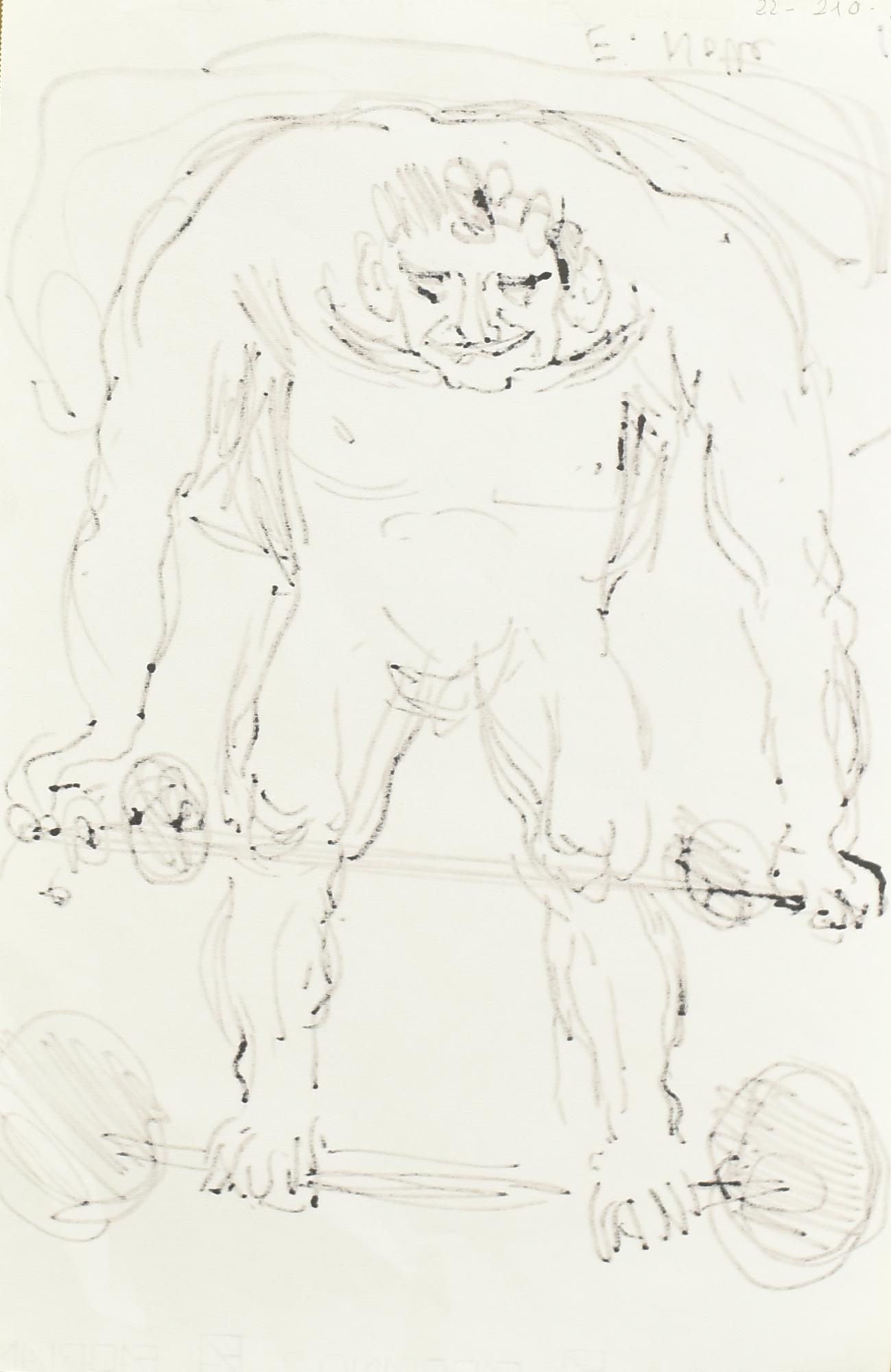 Emilio Notte SOLLEVATORE DI PESI pennarello su carta, cm 47x31 firma