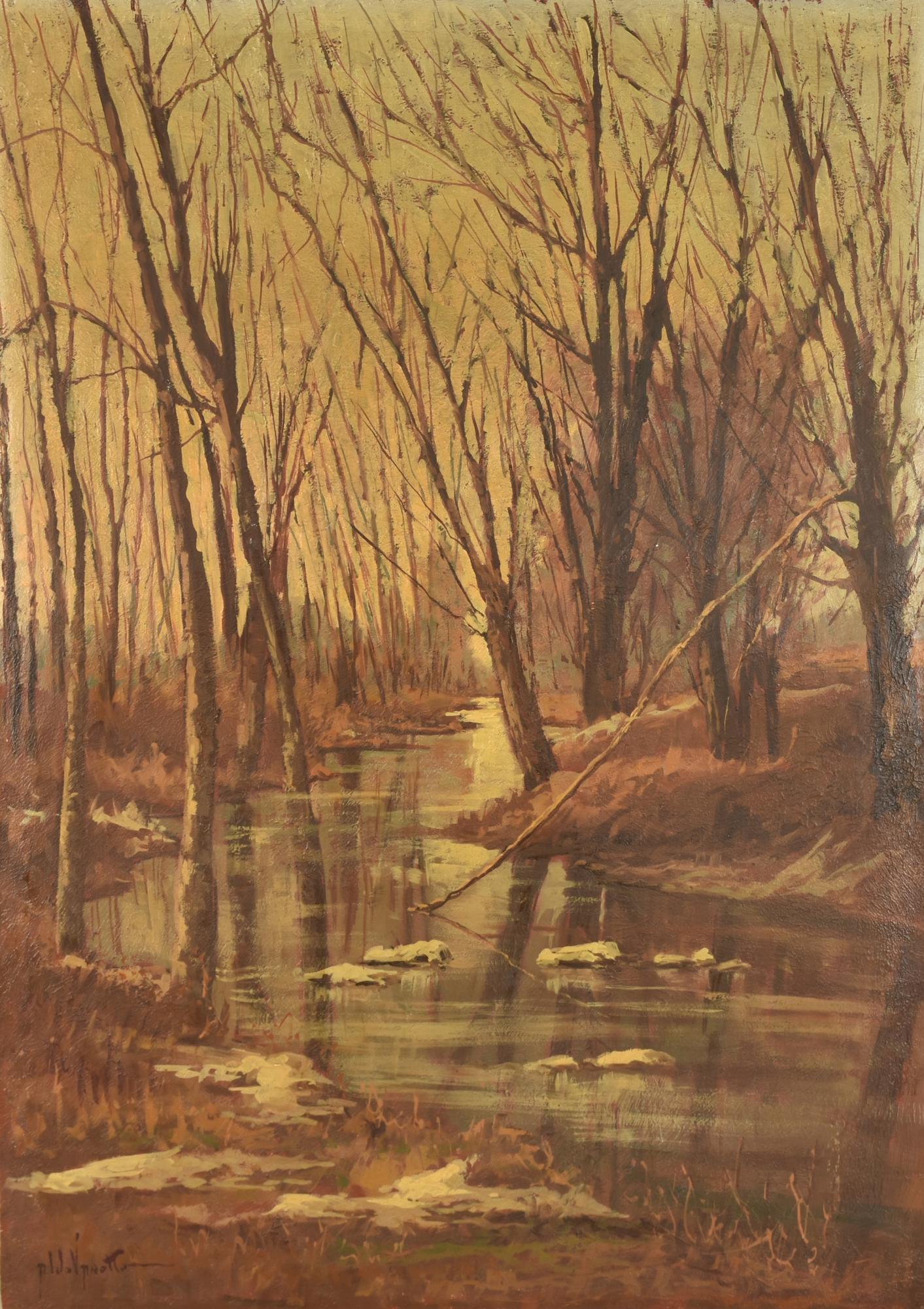 Aldo Vanotto FORESTA SPOGLIA olio su cartone, cm 70x50 firma sul retro: firma