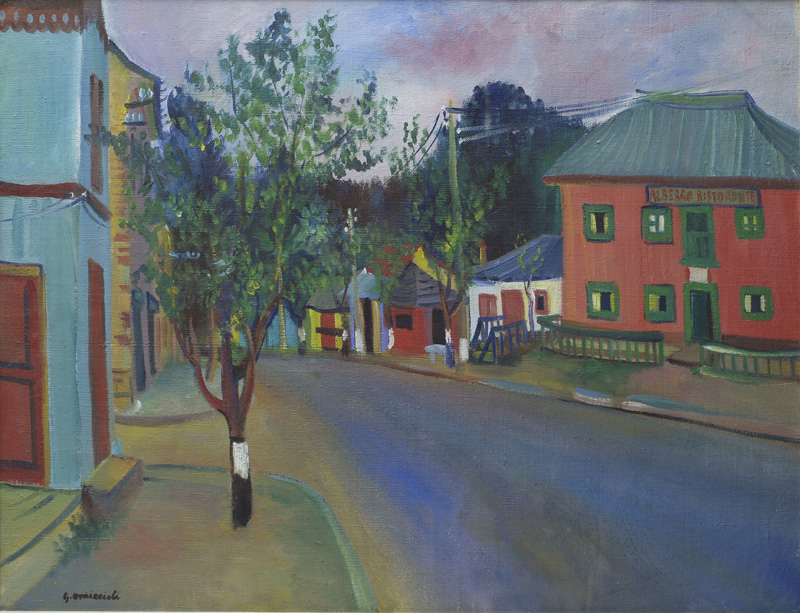 Lotto 42 | Giovanni Omiccioli (Roma, 1901 - 1975) STRADA Olio su tela, cm. 48x65 Firma...