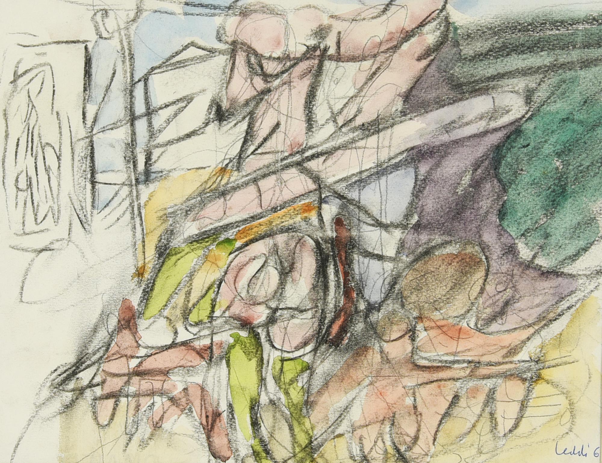 Piero Leddi SENZA TITOLO carboncino, pastelli e acquarello su carta, cm...