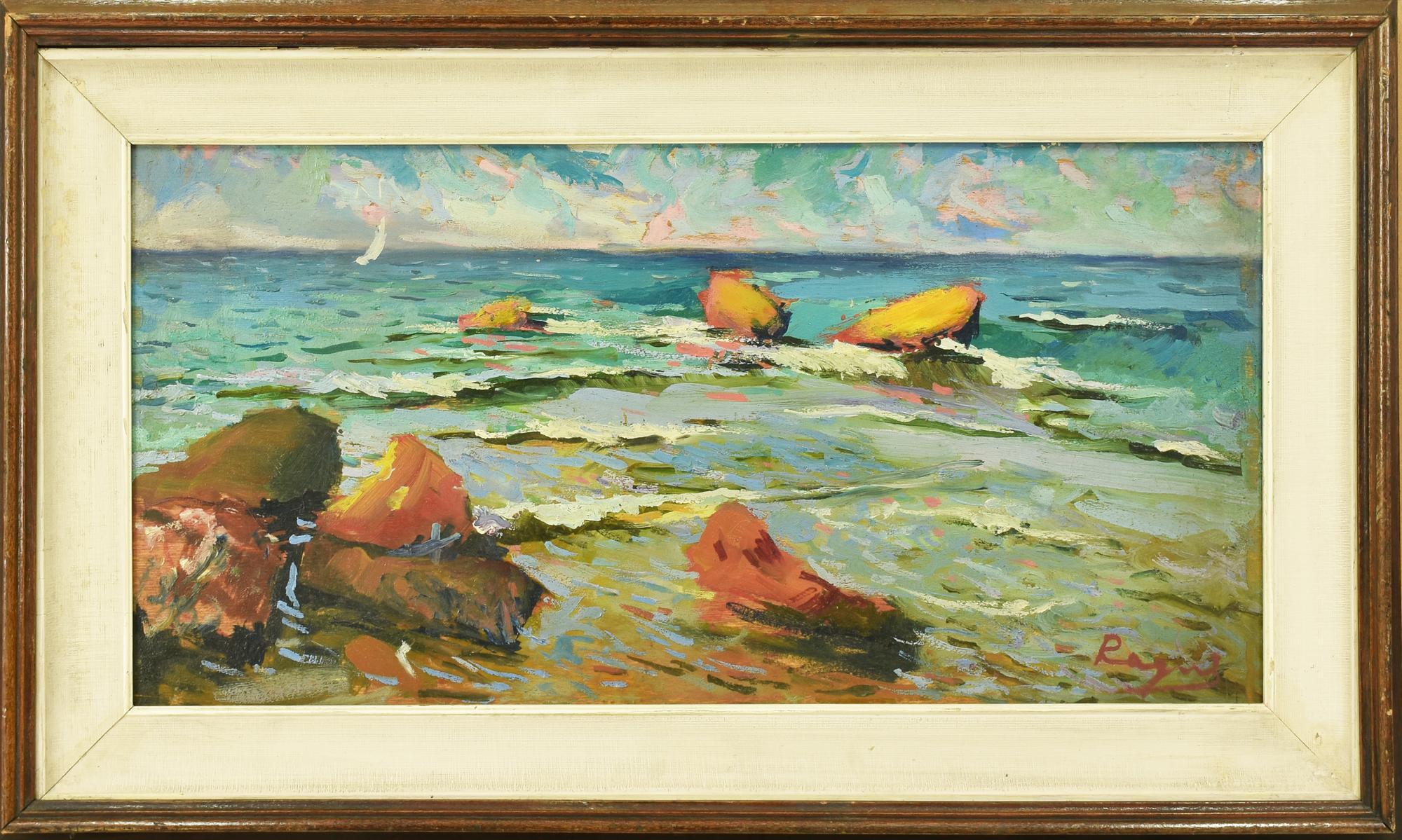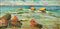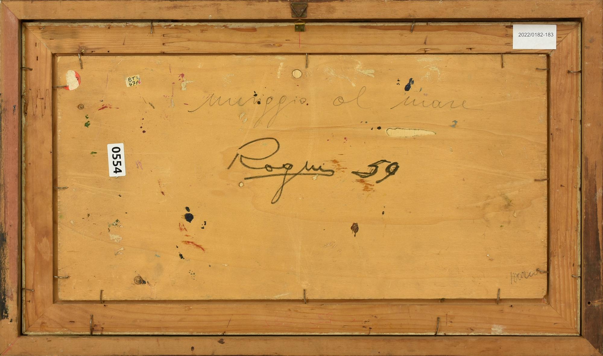 Ragni Basso MAGGIO AL MARE olio su tavola, cm 28x60 firma sul retro: firma,...