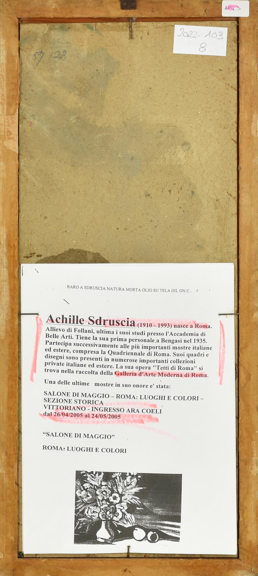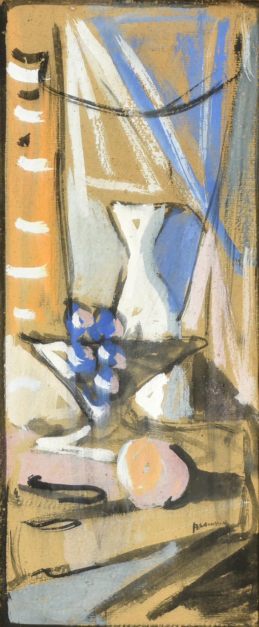 Achille Sdruscia NATURA MORTA tecnica mista su cartone, cm 55x20 firma...