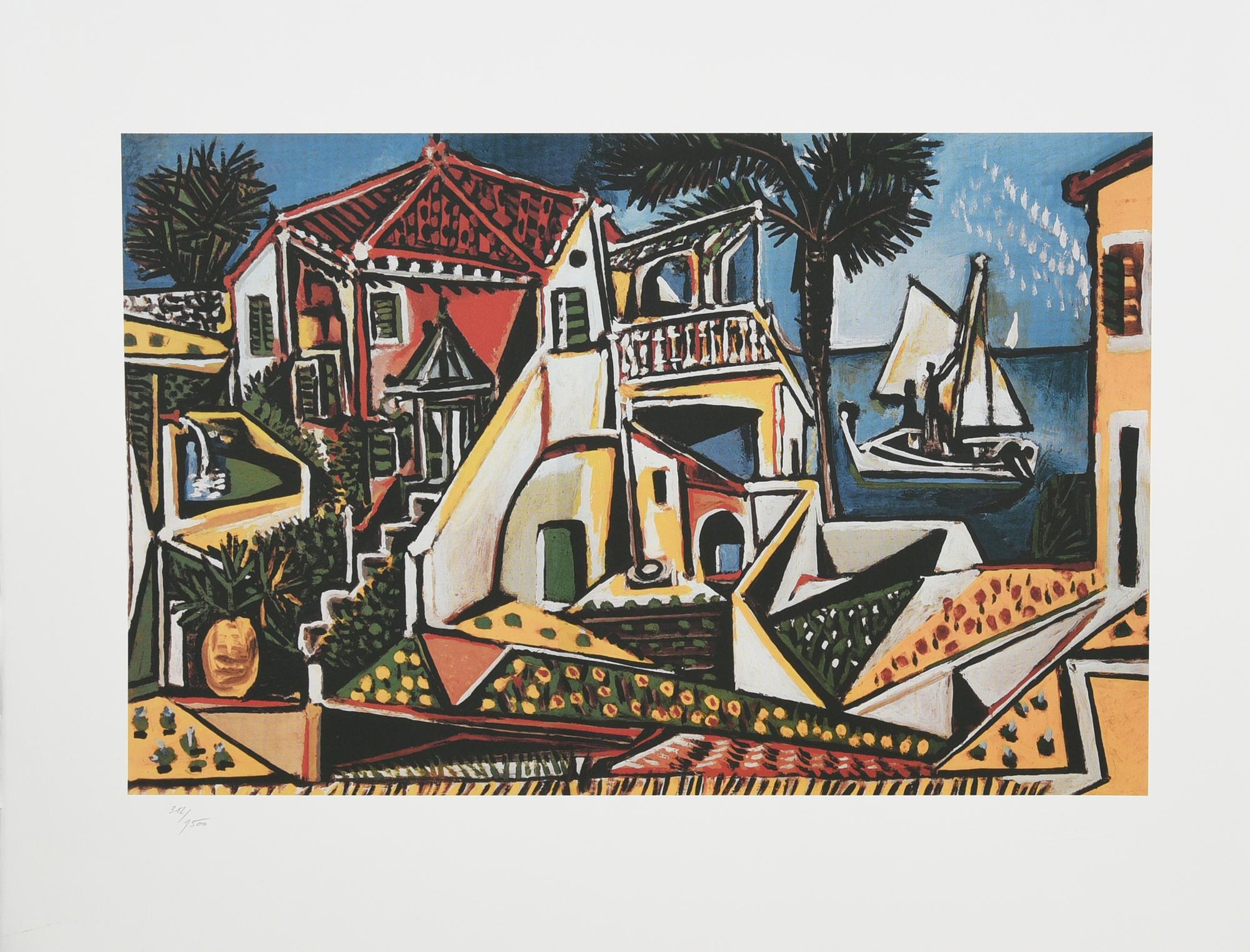 D'apres Pablo Picasso PAESAGGIO MEDITERRANEO foto-litografia, cm 50x66; es....