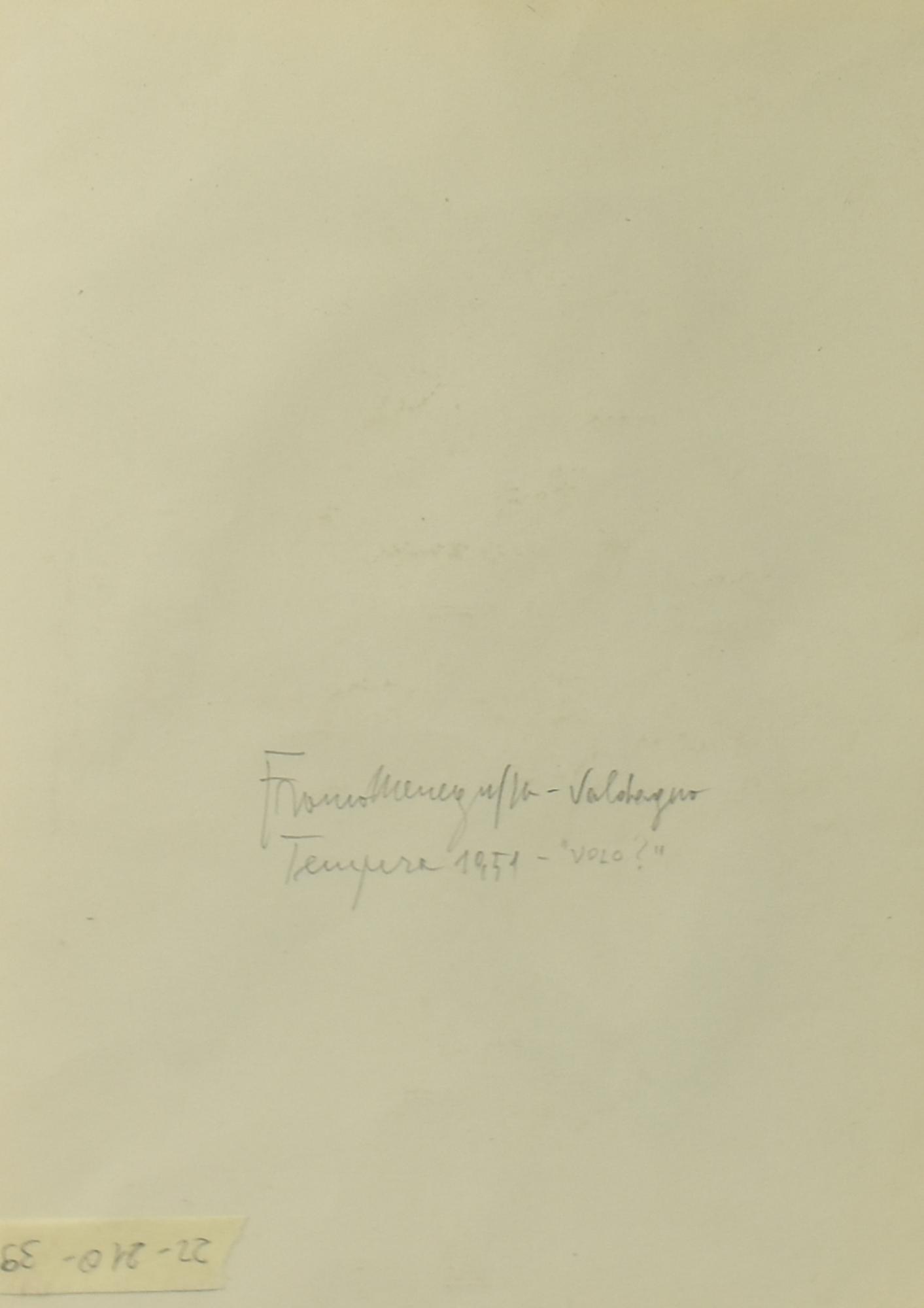 Franco Meneguzzo VOLO tempera su carta, cm 35x25 firma e data sul retro:...