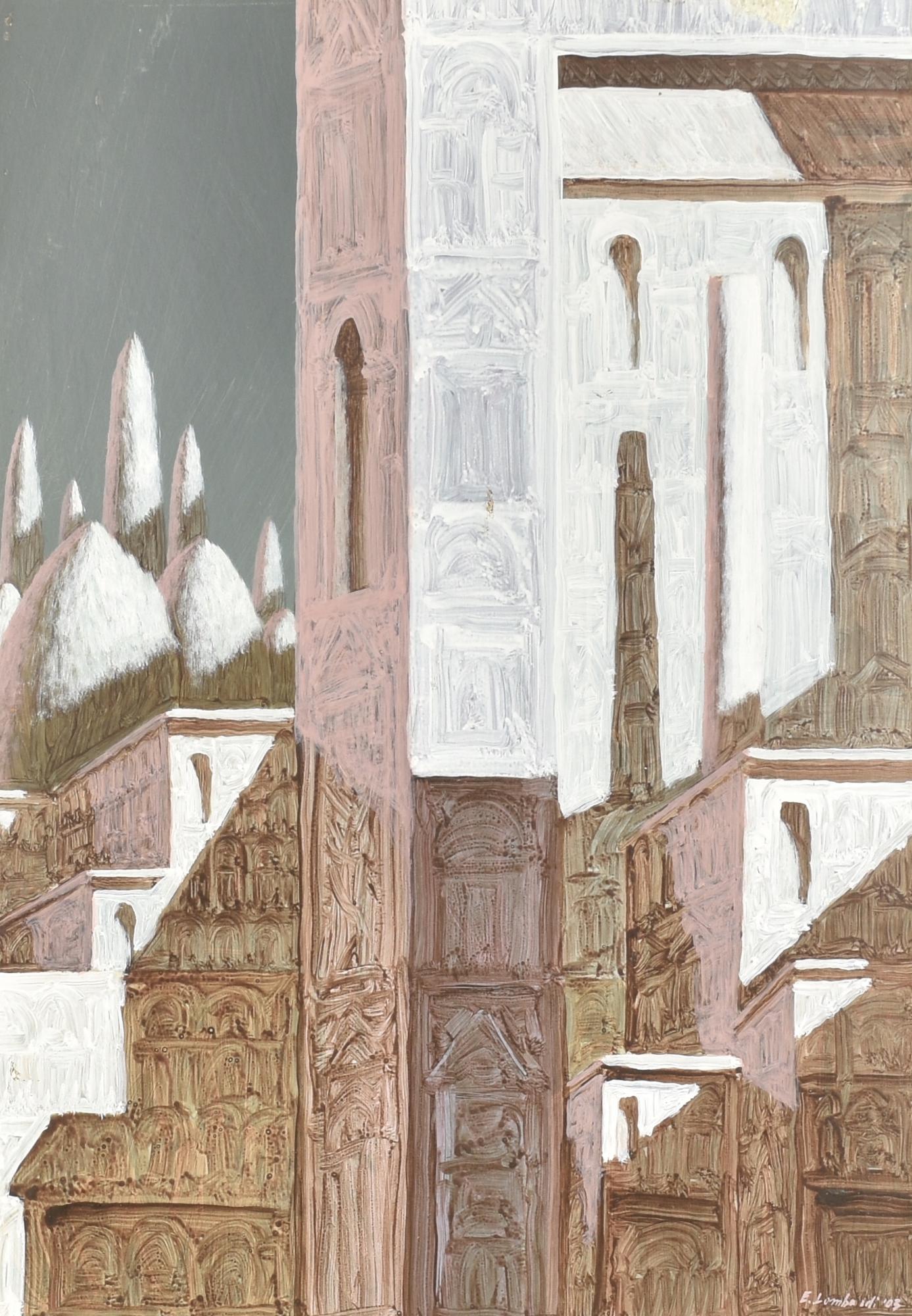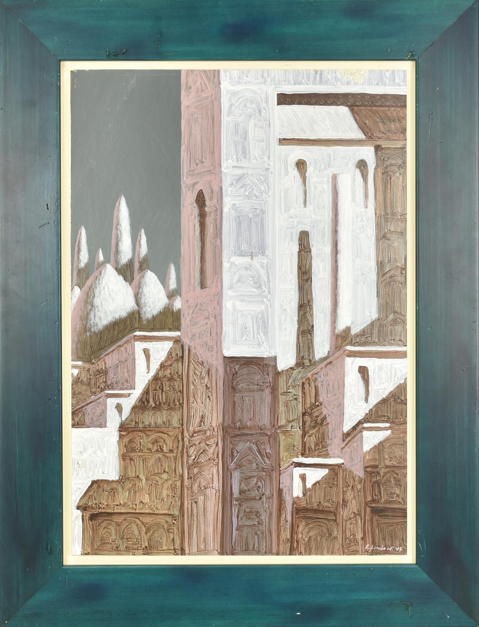 Enrico Lombardi PAESAGGIO TOSCANO tecnica mista su cartoncino applicato a...