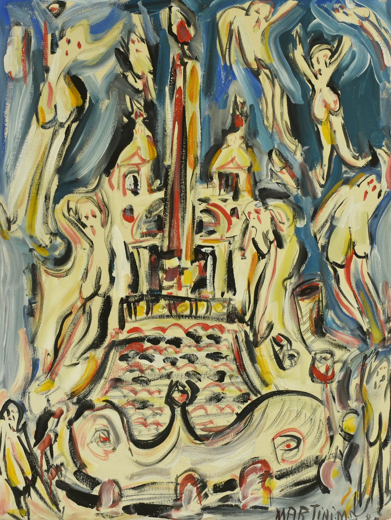 Mario Martini TRINITA' DEI MONTI olio su tela, cm 80x60 firma e data eseguito...