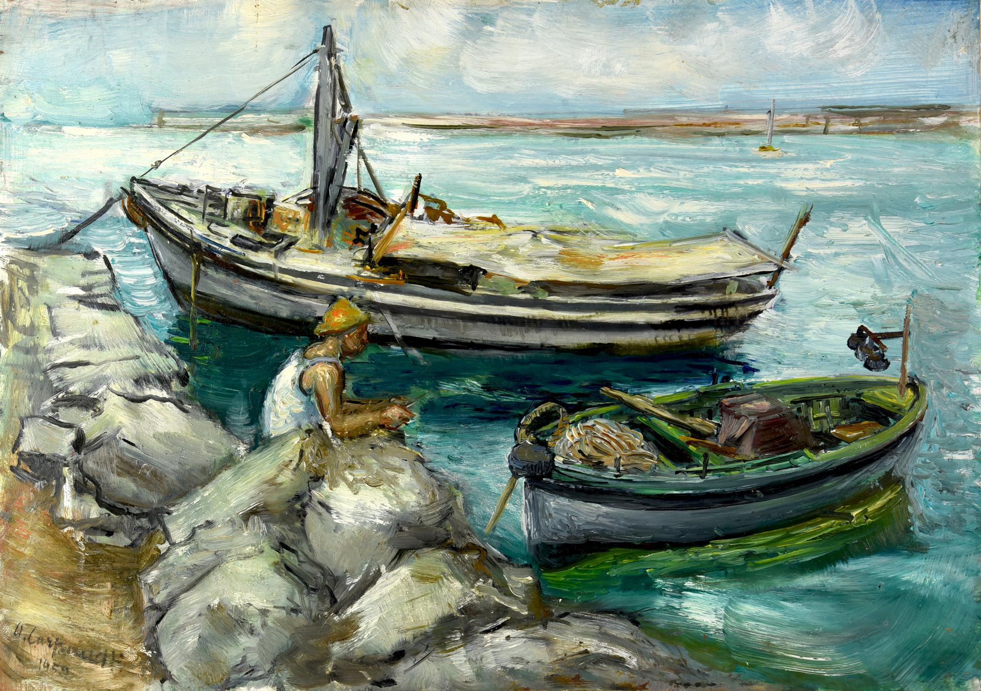 Arnaldo Carpanetti PESCHERECCIO olio su faesite, cm 43x60 firma e data...