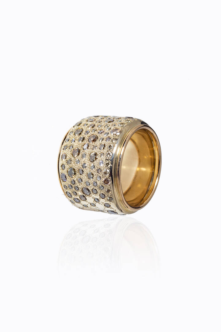 Anello in oro giallo e bianco, a fascia, firmato "Pomellato", modello "Sabbia", con diamanti taglio brillante di colore brown per totali ct 1,80 ca