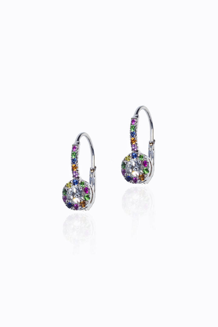 in oro bianco, a monachella, con diamanti taglio brillante per totali ct 0,50 ca e zaffiri gialli, rosa e blu a decoro