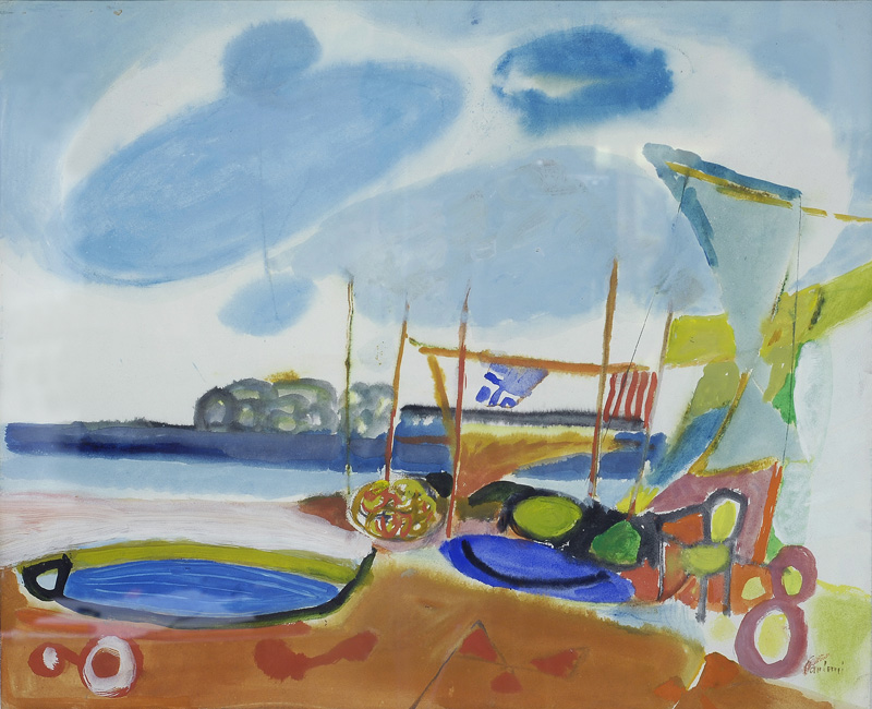 Enrico Paulucci (Genova, 1901 - Torino, 1999) MARINA Olio su carta riportata...