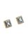 in oro bianco e giallo, a clip, di forma rettangolare con al centro due acquamarine taglio ottagonale a gradini per totali ct 7 ca e profili traforati con decori geometrici e a volute