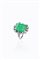in oro bianco, sommità con al centro smeraldo taglio carré di ct 6,0 ca e contorno di diamanti di taglio brillante di vecchio taglio per totali ct 1,50 ca