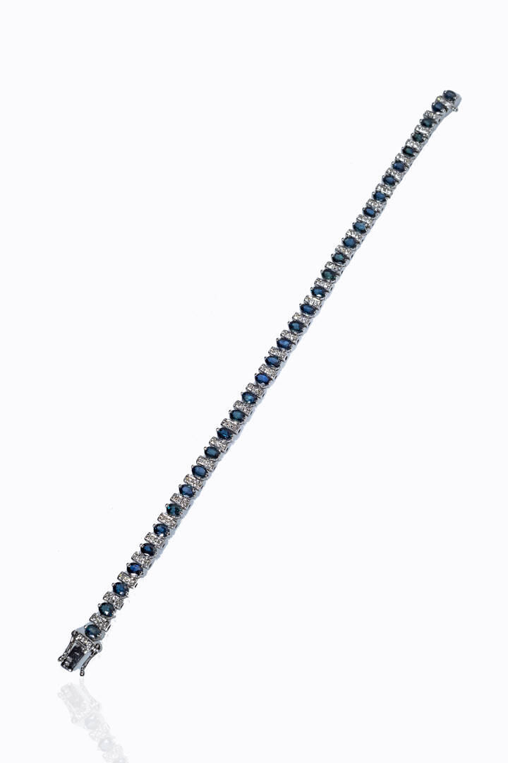 in oro bianco con zaffiri taglio ovale per totali ct 9 ca e diamanti taglio brillante per totali ct 0,85 ca (uno mancante)