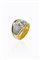 in oro giallo e bianco, a fascia, con al centro un diamante di mezzo taglio di ct 1,40 ca e pavé di diamanti taglio 8/8 per totali ct 1,0 ca