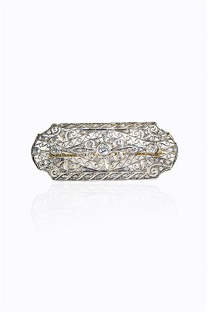 in oro bianco, anni '20, con diamanti taglio brillante e rosette per totali ct 1,20 ca