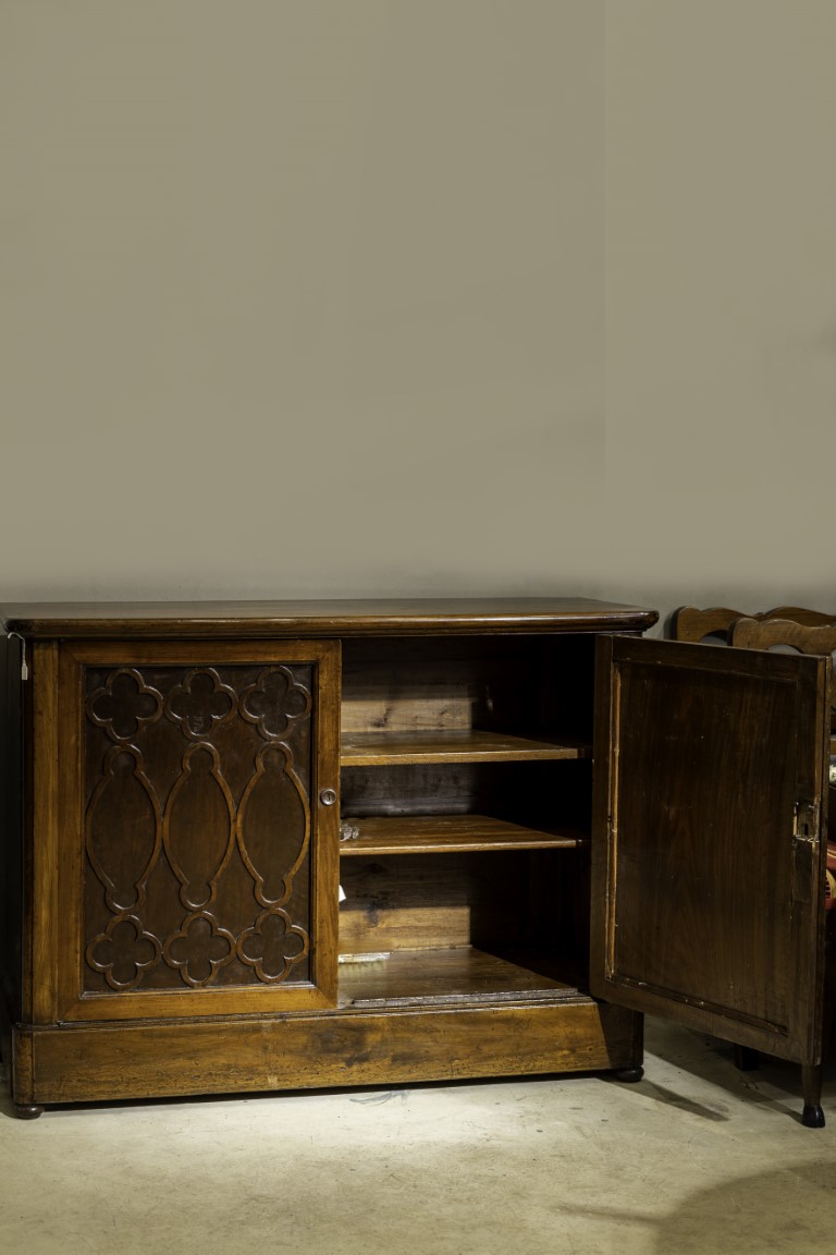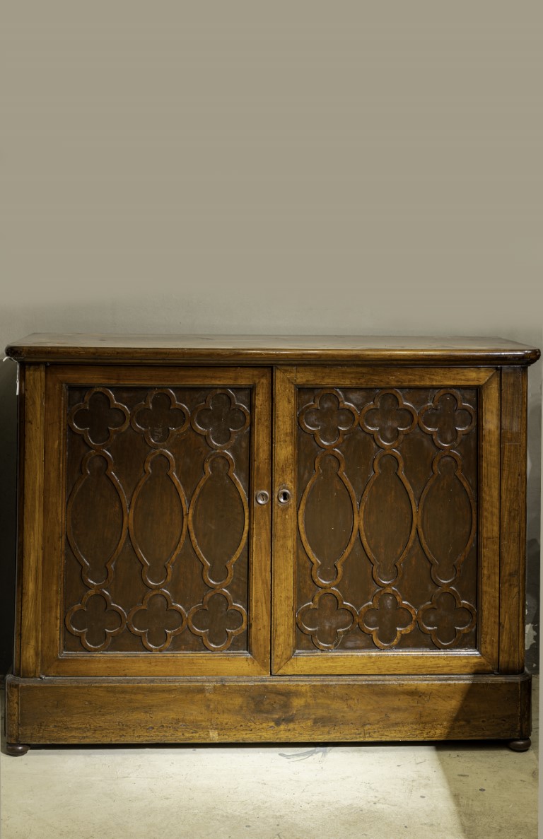 realizzata a due sportelli sul fronte con applicazione di intagli geometrici