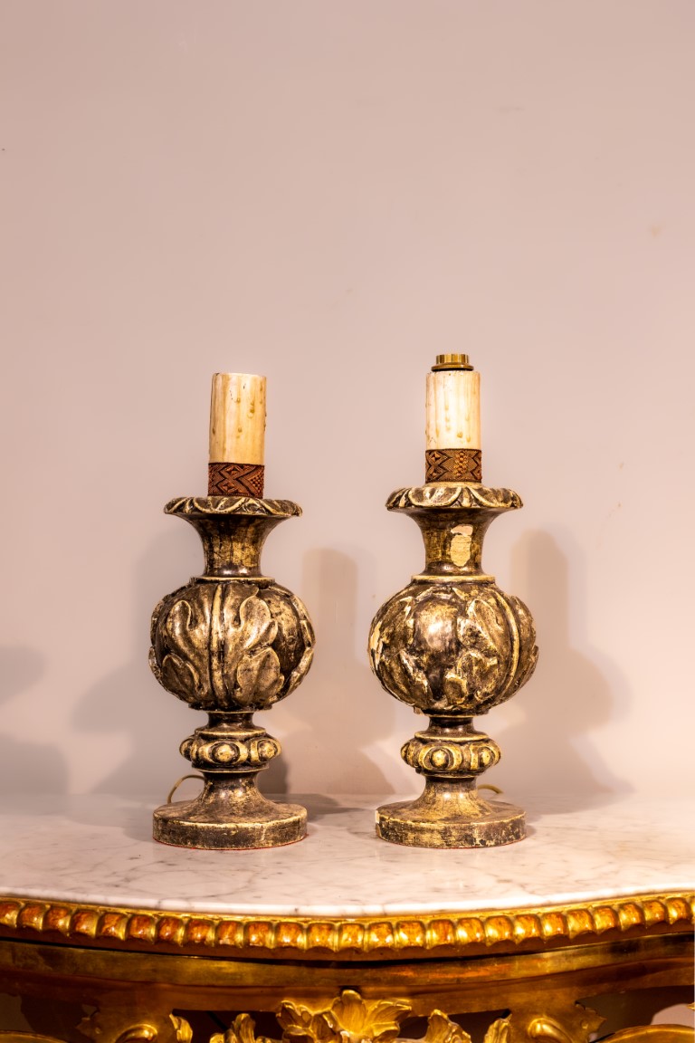 Coppia di perettoni in legno intagliato e dorato a mecca