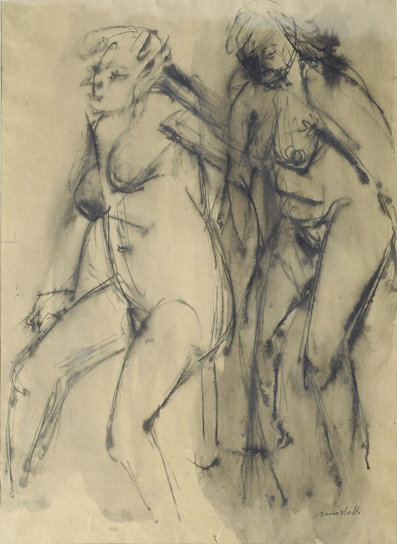 Ennio Morlotti (Lecco, 1910 - Milano, 1992) DUE NUDI China su carta, cm. 50x37 Firma in basso a destra.