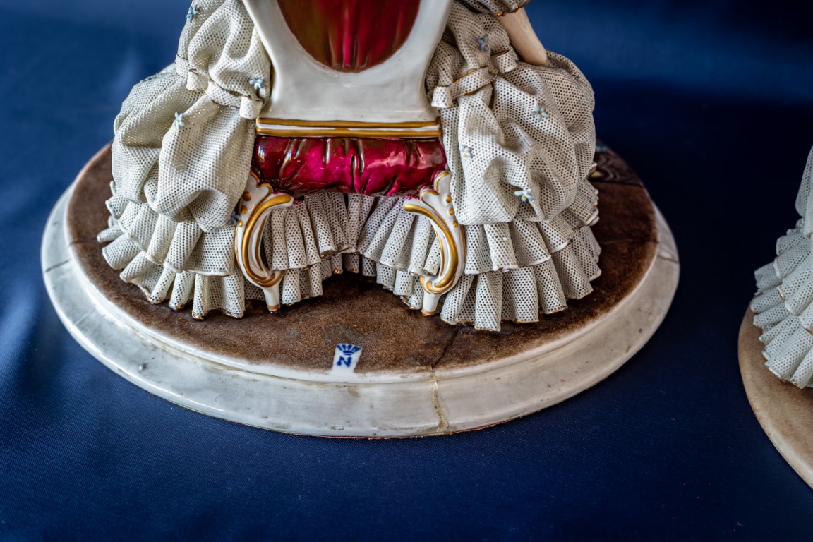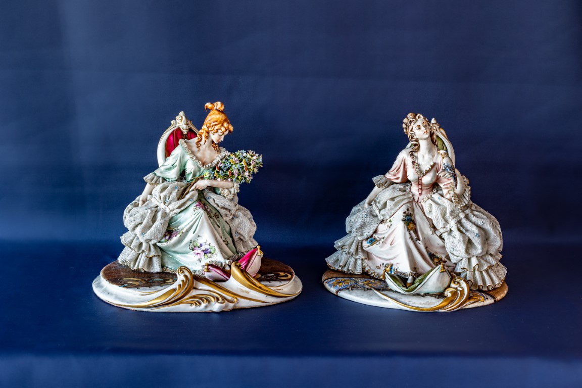 Due dame in poltrona in porcellana policroma