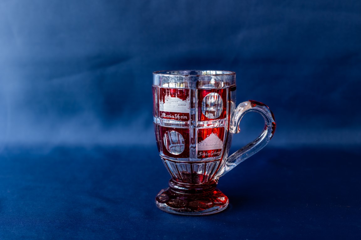 Lotto 156 | Vecchio bicchiere termale in cristallo intagliato a fondo rosso