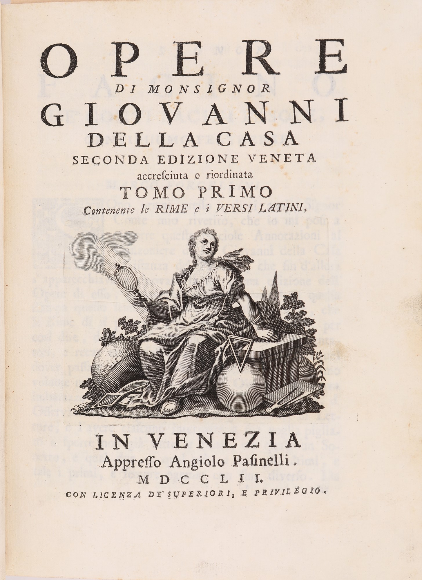 Monsignor Giovanni della Casa. Opere Seconda edizione veneta accresciuta e riordinata