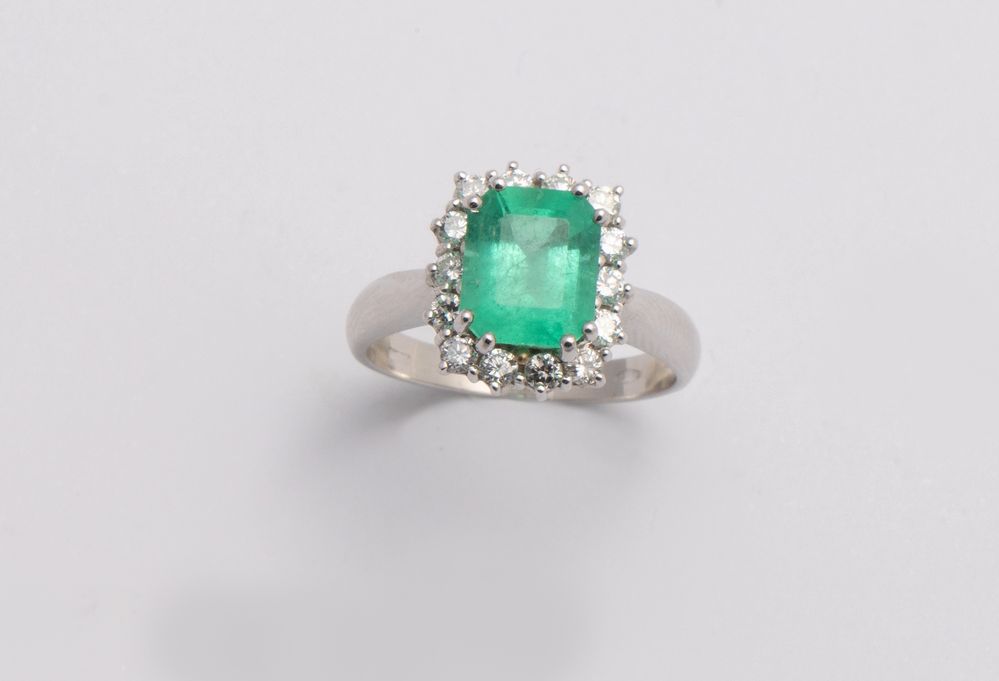 Lotto 8 | ANELLO IN ORO, DIAMANTI E SMERALDO In oro bianco, realizzato con smeraldo...