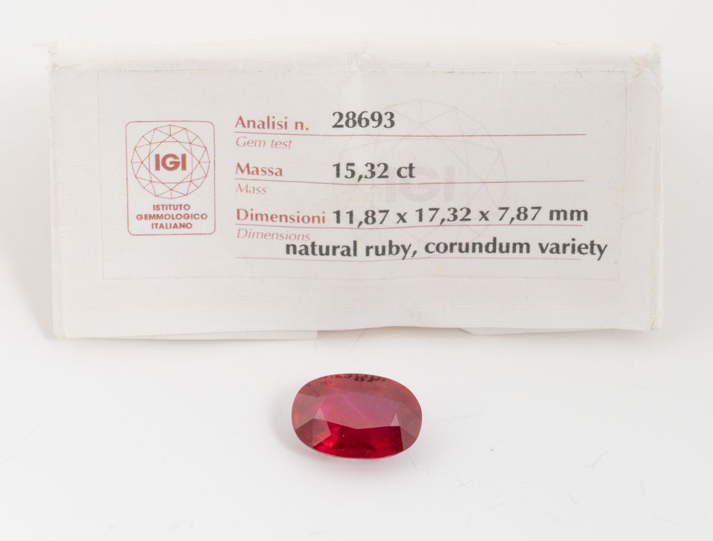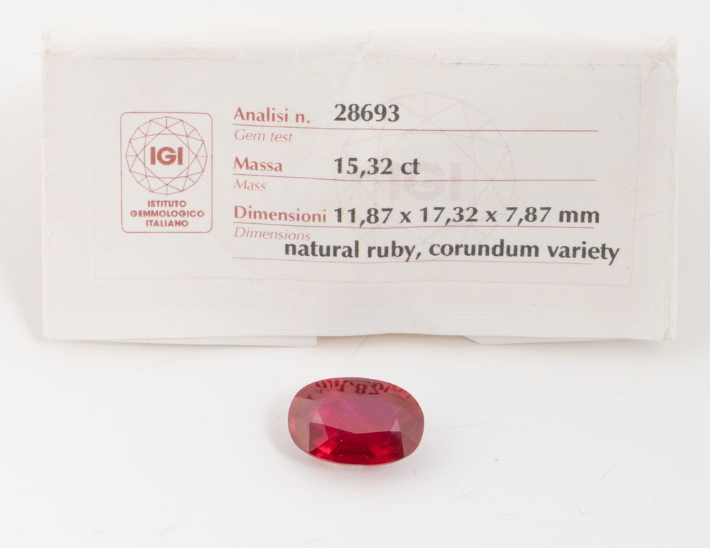RUBINO SCIOLTO CON CERTIFICATO Di forma ovale e taglio composito, peso 15,32...