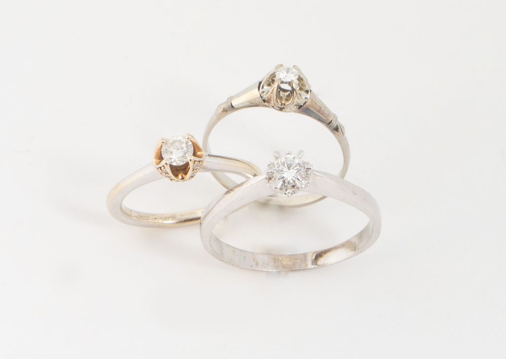 Lotto 45 | TRE ANELLI CON DIAMANTI In oro bianco e rosa, ciascuno centrato da diamante...