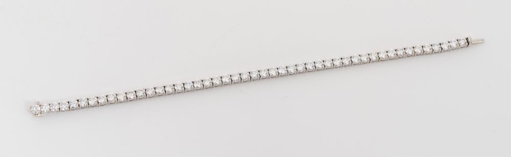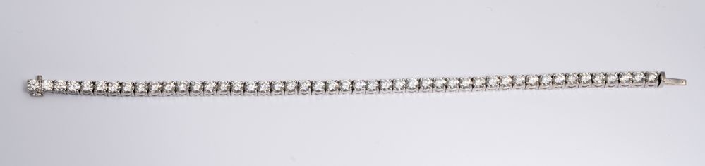 Lotto 77 | BRACCIALE TENNIS IN ORO E DIAMANTI Bracciale tennis realizzato ad una fila di...
