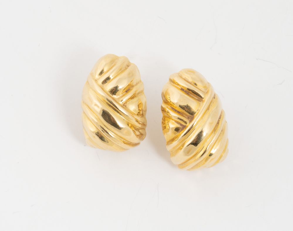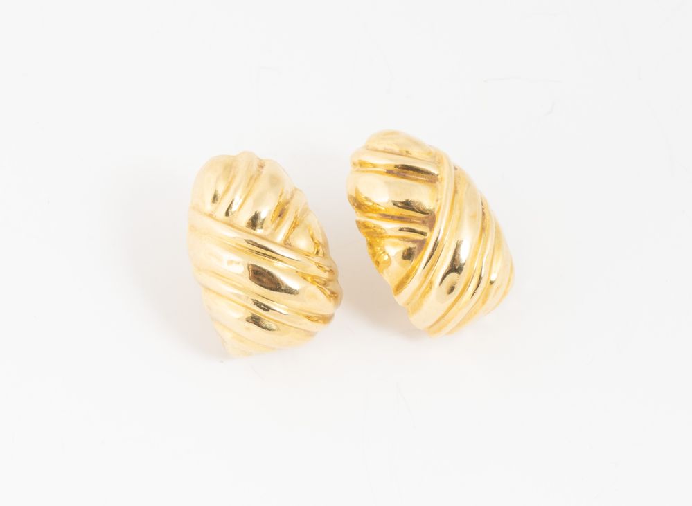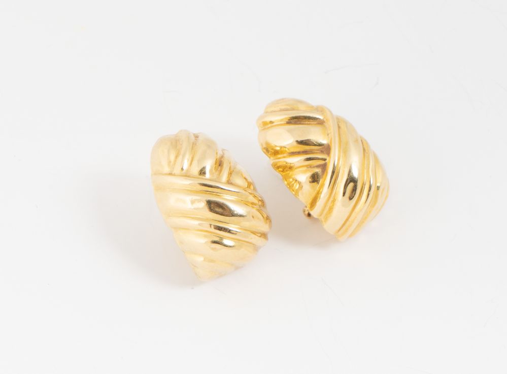 ORECCHINI IN ORO Ciascuno realizzato come una clip disegnata seguendo un...
