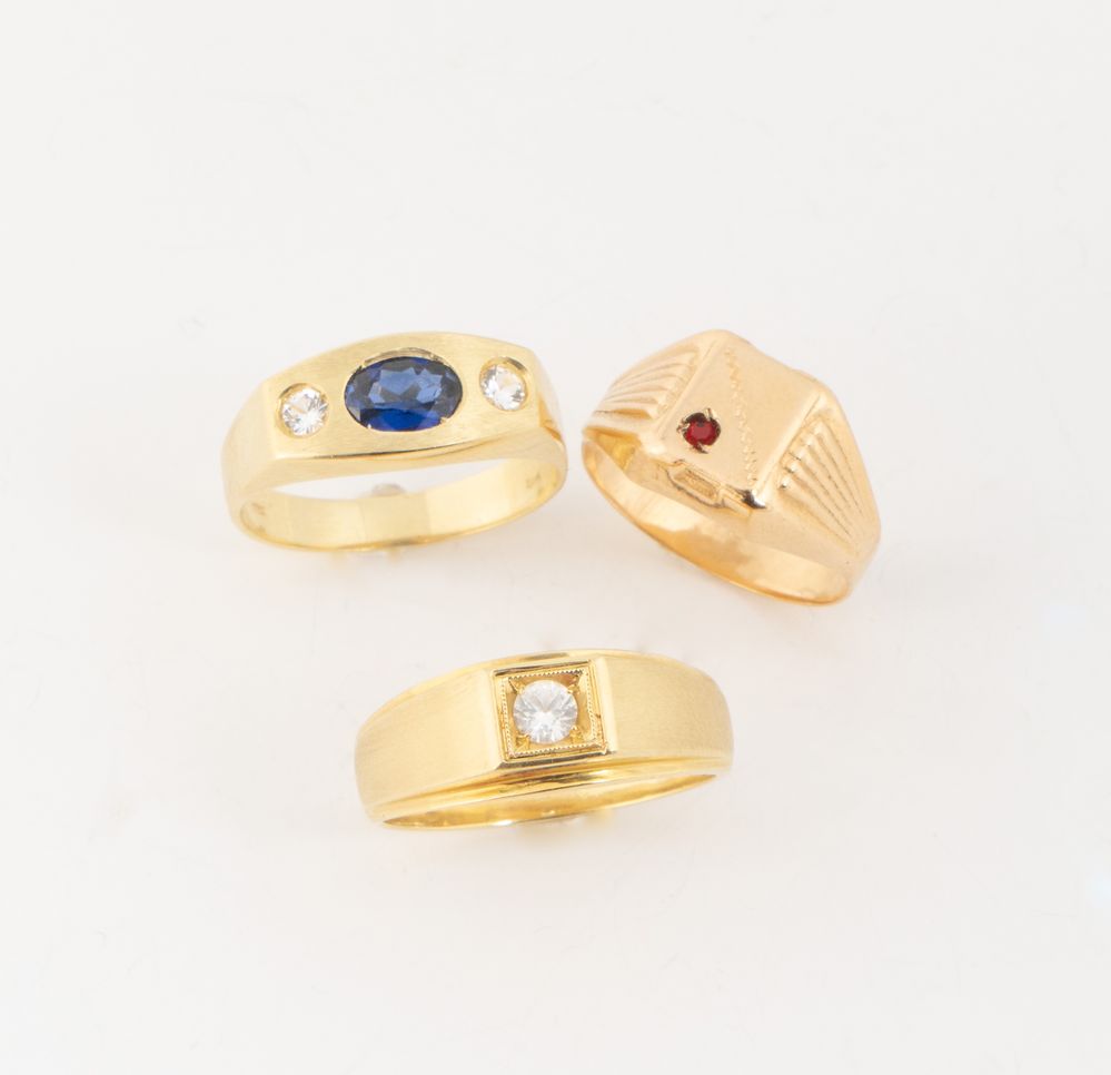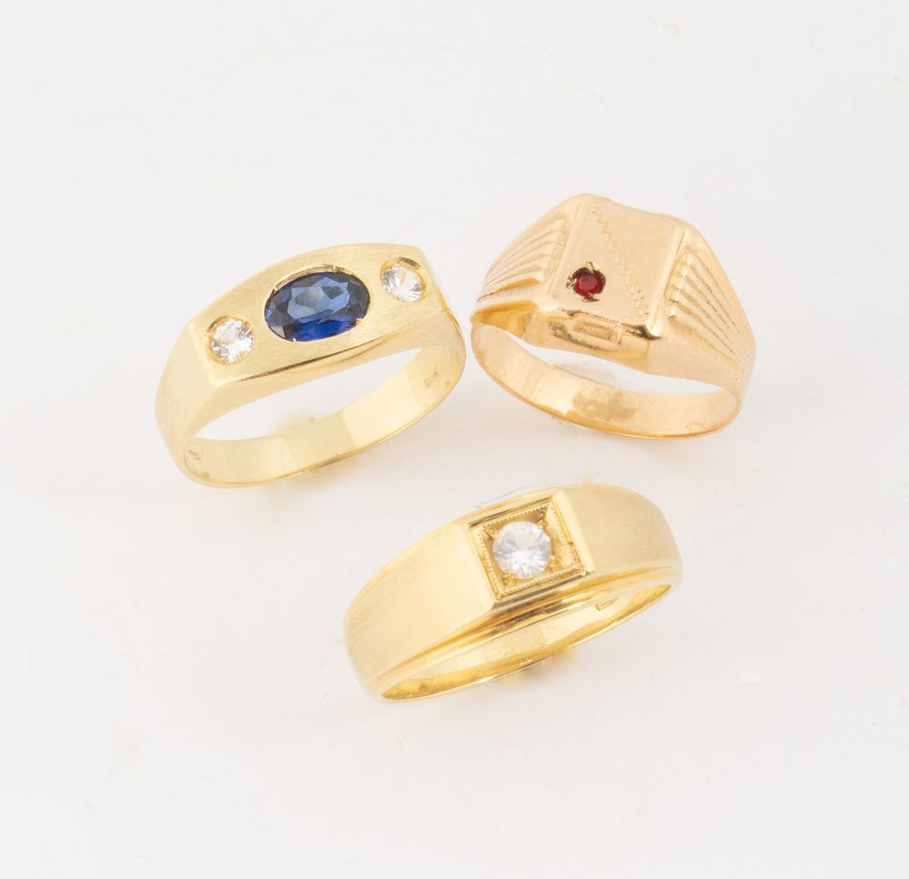 LOTTO DI ANELLI Composto da tre anelli di foggia maschile in oro giallo,...
