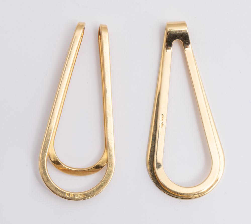 DUE CLIP FERMASOLDI Ciascuna realizzata in oro giallo. Peso complessivo 16,5...