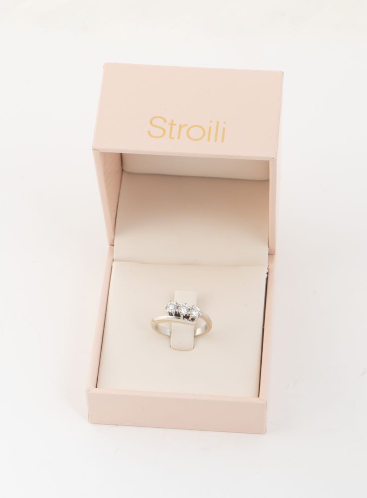 In oro bianco, realizzato con gambo di linea sinuosa centrato da una linea di tre diamanti del peso stimato di 0,60 ct, colore G, purezza VS.