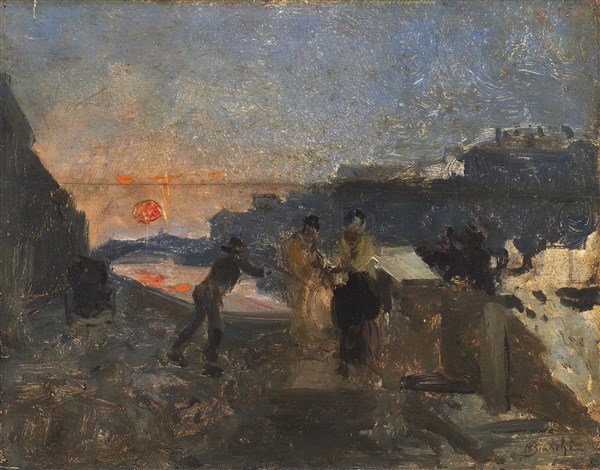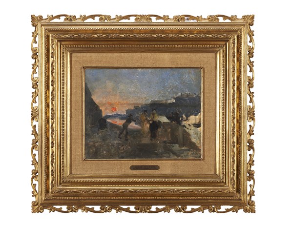 Mosè Bianchi "Al chiaro di luna" olio su tavola (cm 19x24) Firmato in basso a d