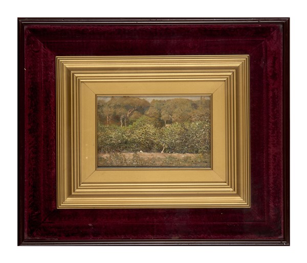 Attilio Pratella "Estate alla Floridiana" olio su compensato (cm 11,5x17,5) Fir