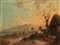 August Franz Schelver "Paesaggio fluviale con figure" olio su tela (cm 56x74) F