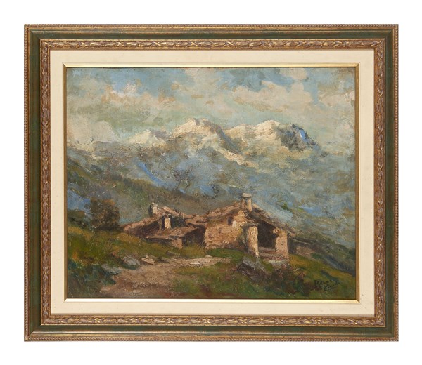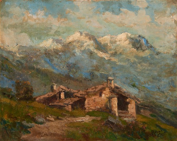 Beppe Ciardi "Paesaggio a Sappada" 1897 olio su compensato(cm 39,5x49)Firmato in b