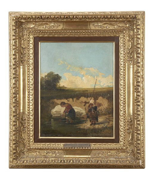 Domenico Induno "Sulla riva" olio su tela (cm 32x25)Firmato in basso a sinistr